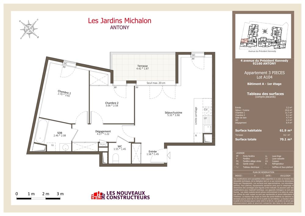 Résidence close et sécurisée avec locaux à vélos et parking privatif en sous-sol.