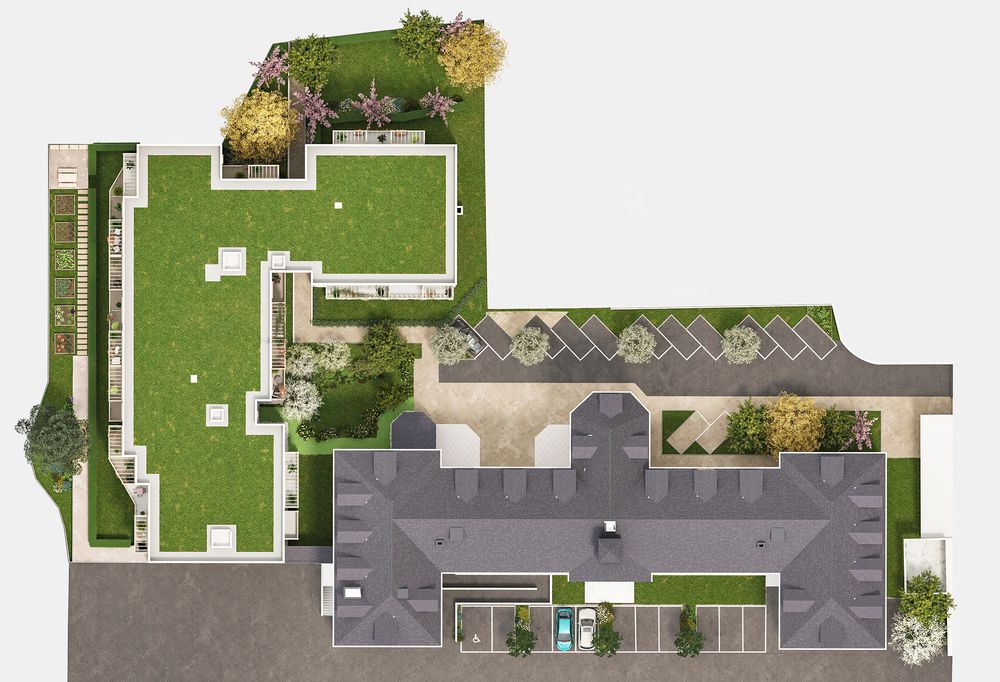 En extérieur, des espaces de repos sont installés afin de profiter le temps d’un moment de détente ou de promenade. Un jardin potager partagé prend place à l’arrière de la résidence et offre aux habitants la possibilité de jardiner, de garder ou d’apprendre à avoir la main verte, seul ou à plusieurs.
