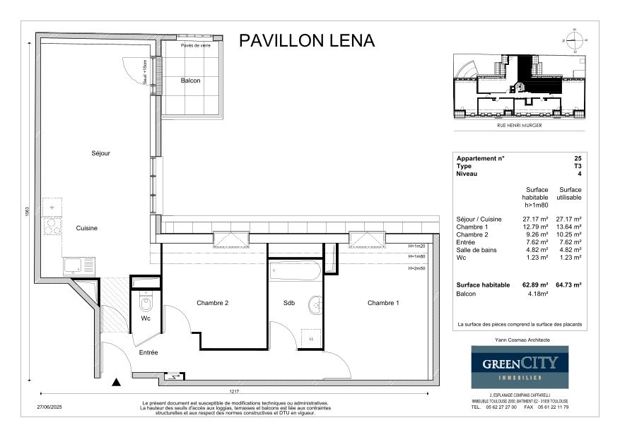 "Pavillon Léna" se compose d'un bâtiment R+5 qui domine la rue Henri Murger et de beaux jardins arborés à l'arrière.
