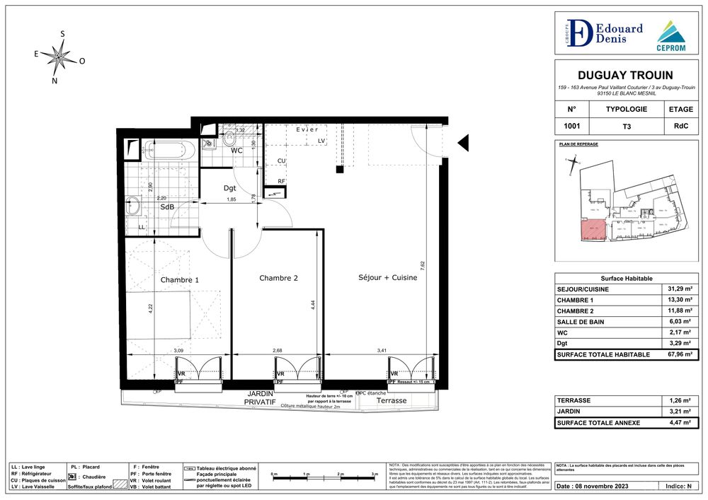 Afin de valider votre achat, vous devrez verser un dépôt de garantie par virement auprès du notaire, 10 jours après la signature de votre contrat de réservation. Le dépôt affiché (1 500 EUR) correspond à une moyenne indicative et peut varier selon le promoteur.