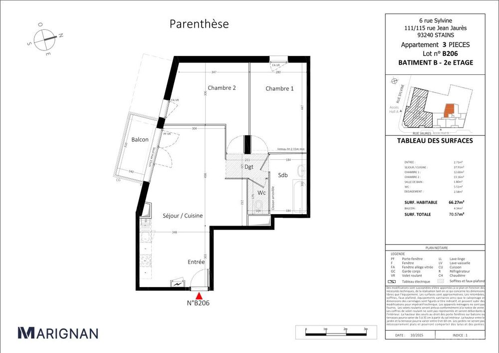 Côté équipements, la résidence met à disposition des places de stationnement ainsi que deux locaux à vélos, garantissant confort et sécurité au quotidien.