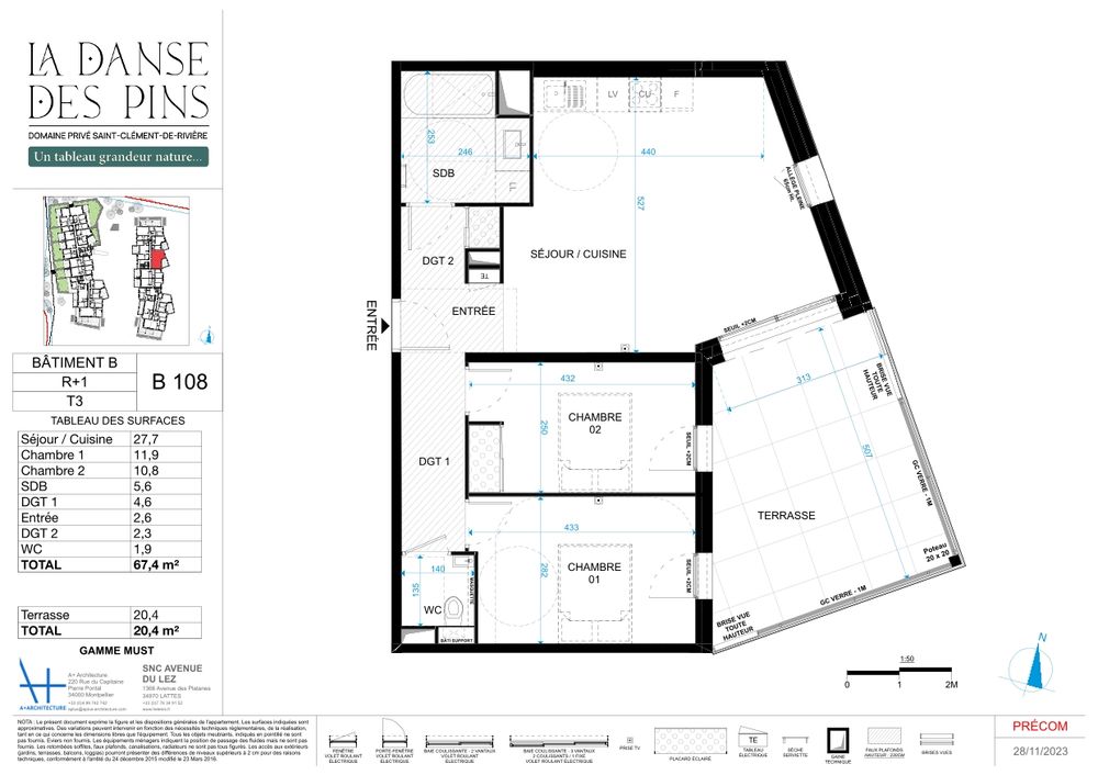 Situé Avenue du Lez, La Danse des Pins est un nouveau concept de résidence services lovée au coeur d'une pinède préservée. Ses façades prennent en compte les matériaux et colorimétries de la région, avec une finition en pierre de parement et des enduits de couleur beige. La résidence est composée de 2 bâtiments en R 2, offrant respectivement 23 et 28 logements allant du T2 au T5 avec terrasses ensoleillées et végétalisées. La Danse des Pins propose des espaces paysagers à taille adulte et des prestations haut de gamme pour offrir un cadre de vie adapté aux exigences d'une génération partageant les mêmes valeurs : indépendance, liberté, plaisir de vivre et convivialité.